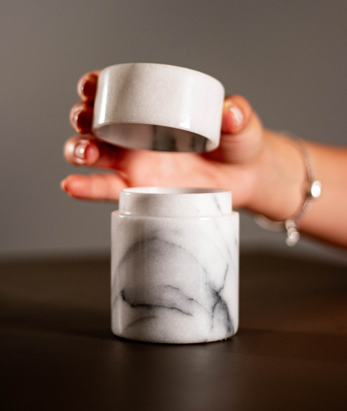 Carrara marmorista valmistettu purkki keittiöön, toimistoon tai muuhun käyttöön.