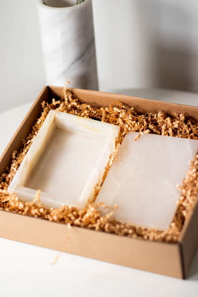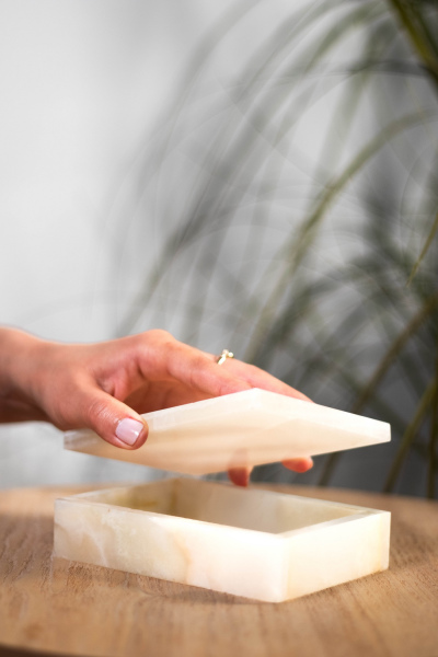 Vaaleasta Honey Onyx marmorista valmistettu arvokas rasia.
