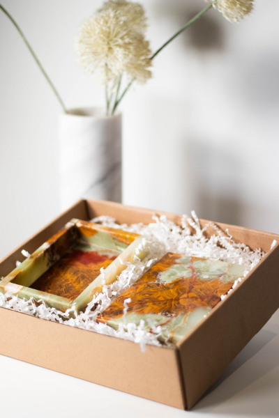Vihreastä Onyx marmorista valmistettu arvokas rasia.