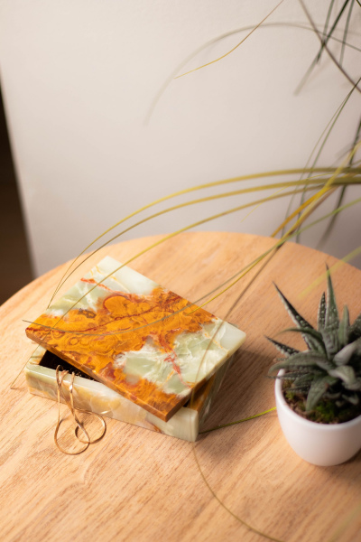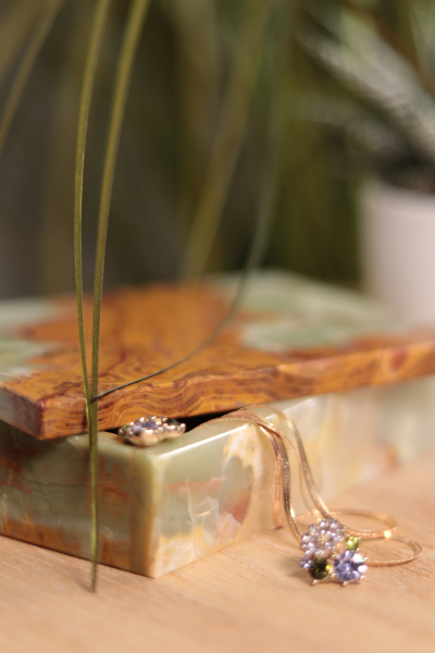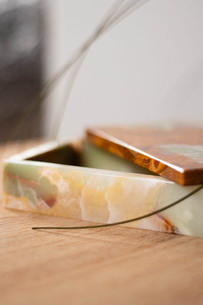 Vihreastä Onyx marmorista valmistettu arvokas rasia.