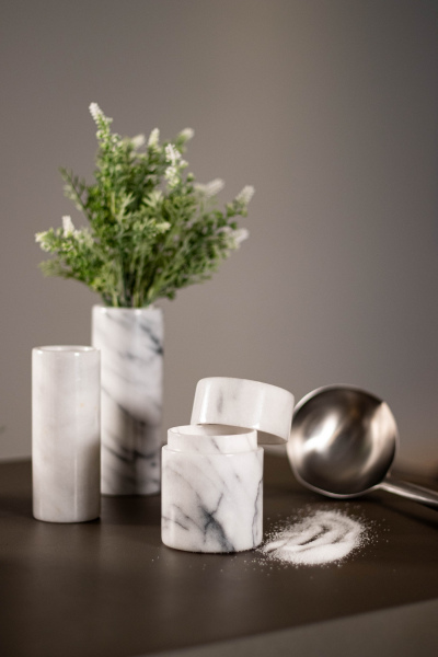 Carrara marmorista valmistettu purkki keittiöön, toimistoon tai muuhun käyttöön.